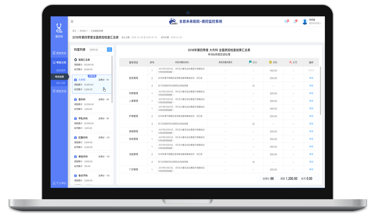 職能科室考核臨床科室,結果自動分發、匯總、上報、分析。